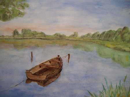 Aquarell auf Papier, Titel: Stille am See, G.L. 2002